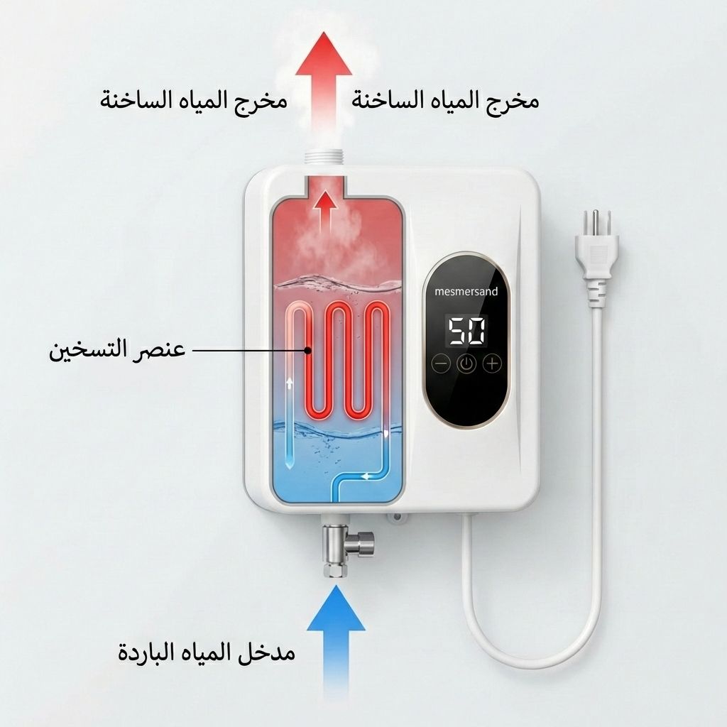استمتع بماء ساخن لا ينقطع في أي وقت، مع توفير كبير في فاتورة الكهرباء وتصميم أنيق يوفر مساحة في مطبخك وحمامك.